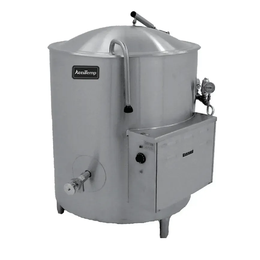 Upgrade your culinary instruments with the AccuTemp ALHEC-40 Electric Stationary Kettle. Designed for commercial restaurant use, this kettle is a game-changer in the kitchen. With a generous 40-gallon capacity and a 2/3 jacket, it provides ample space and even heat distribution for large-scale cooking. The 304 stainless steel liner ensures durability and easy cleaning, while the electronic ignition and field replaceable heating elements guarantee efficient operation. The one-piece actuator-assisted cover and insulated, deep-drawn stainless steel construction further enhance performance and energy savings. Equipped with a 2 compression draw-off valve and leg-mounted design, this kettle offers convenience and stability. With a 30 PSI rating, it can handle high-pressure cooking tasks effortlessly. Certified by cCSAus and NSF, you can trust the quality and safety of this AccuTemp kettle. Upgrade your kitchen today and experience the difference in efficiency and productivity.