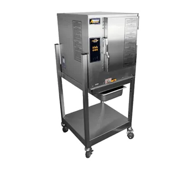 Enhance Your Culinary Adventure with the AccuTemp P61201D060 SGL Steamer, Convection, Gas, Boilerless, Floor Model. Designed for commercial restaurant use, this innovative convection steamer features Steam Vector Technology, ensuring even heat distribution for perfectly cooked dishes every time. With a capacity to hold six 12"x 20"x 2-1/2" deep pans, this steamer is perfect for high-volume cooking. The digital controls make it easy to adjust the settings, while the connectionless evolution boilerless design eliminates the need for water and drain connections, saving you time and money. Plus, the warranty is not voided by water quality, and no water filtration is required. With 60,000 BTU of power, this steamer delivers exceptional performance, and it is ENERGY STAR certified for energy efficiency. Complete with a stand in the configuration of your choice, the AccuTemp P61201D060 SGL Steamer is a must-have for any commercial kitchen.