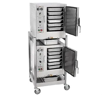 Invest in Quality Cookware with the AccuTemp S64803D140 DBL Steamer. This floor model convection steamer is perfect for commercial restaurant use, offering convenience and efficiency. With two SteamNHold boilerless compartments, this steamer can hold six 12" x 20" x 2-1/2" deep pans in each compartment, allowing for large batch cooking. The manual mechanical timer controls make it easy to set precise cooking times, while the vacuum cooking feature ensures consistent and flavorful results. What sets this steamer apart is that it requires no water or drain connections, saving you time and hassle. The stand with casters provides mobility, allowing you to move the steamer wherever it's needed. With a powerful 14kW electric heating system and ENERGY STAR certification, this AccuTemp steamer is not only efficient but also environmentally friendly. Upgrade your restaurant's cooking capabilities with the AccuTemp S64803D140 DBL Steamer.