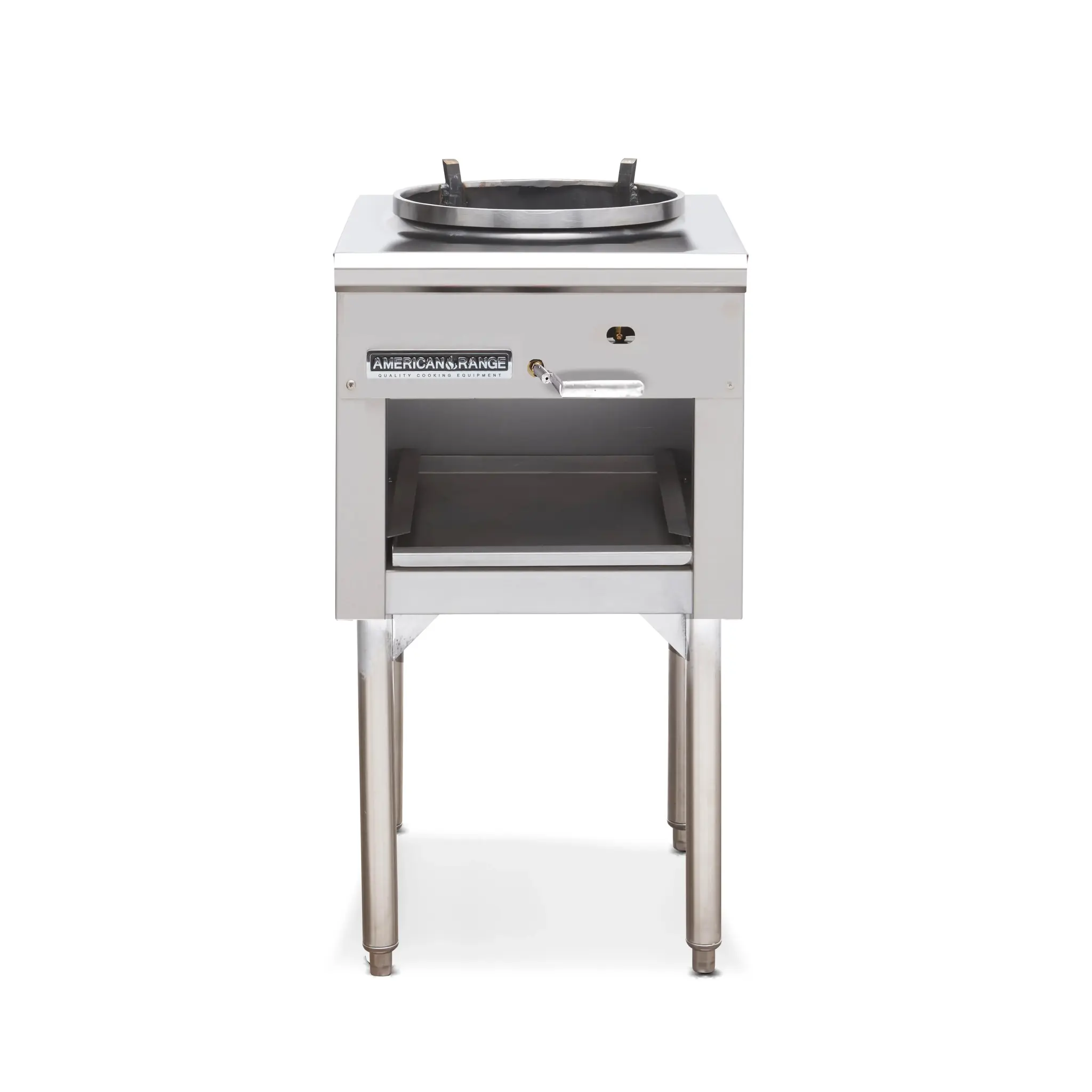 Cooking excellence, redefine your culinary experience with the American Range ARWR-J13 Gas Wok Range. Designed specifically for commercial restaurant use, this range is a game-changer in the kitchen. The 23 tip jet burner delivers powerful heat, ensuring quick and efficient cooking. The 13" diameter Wok ring provides ample space for stir-frying and other wok-based dishes. With a 2" high opening, you can easily maneuver your ingredients without any hassle. The brass control valve with an aluminum handle allows for precise temperature control, giving you the freedom to create culinary masterpieces. Cleaning up is a breeze thanks to the removable grease pan. Made in the USA with stainless steel front, sides, and tubular legs with adjustable feet, this wok range is built to last. Trust American Range for quality and reliability in your commercial kitchen.