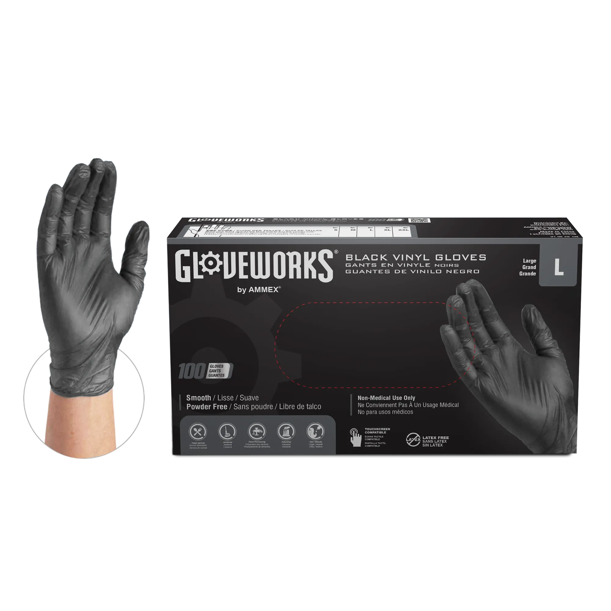 Deliver impeccable service with Ammex, IVBKPF46100, Black Vinyl Gloves. Designed for commercial restaurant use, these gloves offer exceptional quality and reliability. Made from durable vinyl, these gloves are perfect for handling food and maintaining hygiene standards. The black color adds a touch of sophistication to your establishment, while the ambidextrous design ensures a comfortable fit for all staff members. These gloves are powder-free and non-sterile, making them safe for food handling. The smooth, polymer-coated surface provides excellent grip and dexterity, allowing your staff to work efficiently. With Ammex, IVBKPF46100, Black Vinyl Gloves, you can confidently serve your customers while maintaining the highest standards of cleanliness and professionalism.