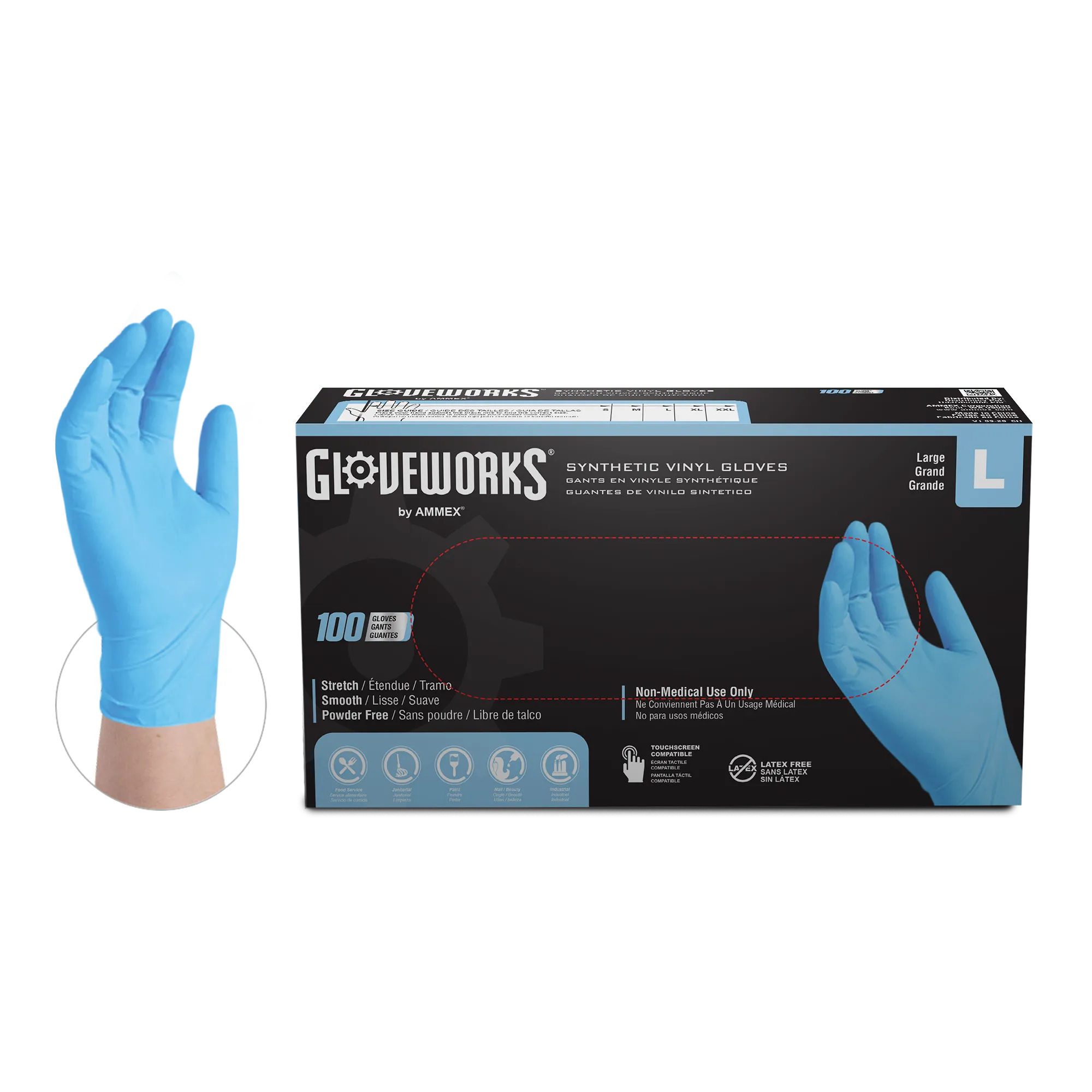 Serve with confidence with Ammex Synthetic Vinyl Gloves. Designed for commercial restaurant use, these latex-free disposable gloves offer excellent fit and comfort. Made with a blend of synthetic materials and PVC, they combine advanced synthetic rubber and vinyl polymer to create a soft, supple, and elastic glove with unique shape memory. At 3 mils thick, these gloves are perfect for food service, janitorial and sanitation tasks, nail and beauty salons, painting, and more. Whether you're handling food, cleaning, or performing other tasks in a commercial restaurant setting, these gloves provide the protection and dexterity you need. Trust Ammex Synthetic Vinyl Gloves to keep your hands safe and your customers satisfied.