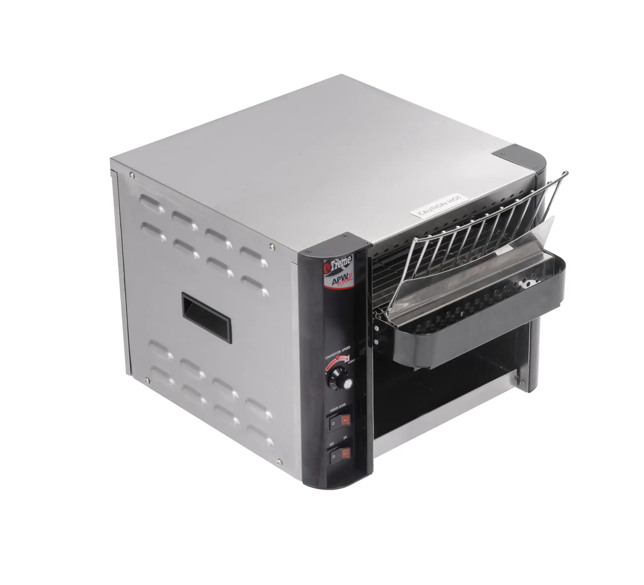 Crafted for those who appreciate cooking, the APW Wyott XTRM-1 Conveyor Toaster is a must-have for any commercial restaurant. With its impressive capacity of 350 slices per hour, this electric countertop toaster is designed to keep up with the demands of a busy kitchen. The 1-1/2" high opening and 10" wide belt allow for easy toasting of various bread sizes, while the metal sheathed heating elements ensure quick and even toasting every time. The variable speed and power-saving switch provide flexibility and energy efficiency, making it a cost-effective choice for any establishment. The stainless steel housing and painted aluminum front corners not only add durability but also give it a sleek and professional look. With adjustable legs for added convenience, this cULus and CE certified toaster is a reliable and efficient addition to any commercial kitchen.