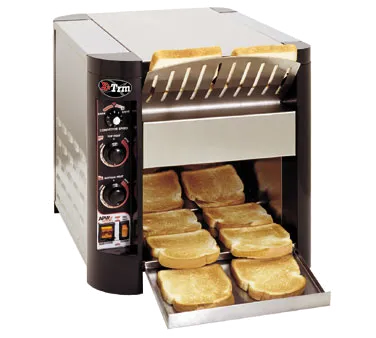 Elevate dining, pure elegance. Introducing the APW Wyott XTRM-2H Conveyor Toaster, designed to revolutionize your commercial restaurant experience. With its sleek stainless steel front, top, and sides, this toaster exudes sophistication while delivering exceptional performance. Boasting a capacity of 600 slices per hour, it ensures efficient and speedy toasting, perfect for high-volume establishments. The 3"H opening and 10"W belt accommodate various bread sizes, while the top and bottom heat controls allow for precise customization. Thanks to the pre-heat convection system and variable speed, you can achieve consistent and evenly toasted results every time. The air-cooled design keeps the exterior cool to the touch, ensuring safety and convenience. With 1" adjustable legs, this toaster can be easily positioned to fit your countertop space. Trust APW Wyott, a renowned vendor in the industry, to provide you with a reliable and durable conveyor toaster that will enhance your restaurant's efficiency and elevate your customers' dining experience.
