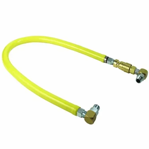 Support daily operations with the Gas Flex Hose, a reliable and essential component for any restaurant kitchen. This high-quality gas hose, measuring 3/4" x 4ft, is designed to provide flexibility and safety in your gas connections, ensuring smooth and efficient performance of your kitchen equipment. The Gas Flex Hose comes equipped with a quick disconnect feature, allowing for easy and swift disconnection and reconnection of gas lines, which is particularly useful during maintenance or equipment relocation. Additionally, the inclusion of two elbows ensures that the hose can be maneuvered into tight spaces, making it adaptable to various kitchen layouts. Safety is paramount in any restaurant setting, and the Gas Flex Hose addresses this with its included restraining device and gas valve. The restraining device helps to prevent accidental disconnections, while the gas valve provides an extra layer of control over gas flow, enhancing the overall safety of your kitchen environment. The model WA300001 is specifically designed to meet the rigorous demands of a busy restaurant, offering durability and reliability that you can count on. Whether you are setting up a new kitchen or upgrading your existing gas connections, the Gas Flex Hose is an indispensable tool that ensures your operations run smoothly and safely. Invest in the Gas Flex Hose today and experience the peace of mind that comes with using top-quality equipment designed for the unique needs of the restaurant industry.