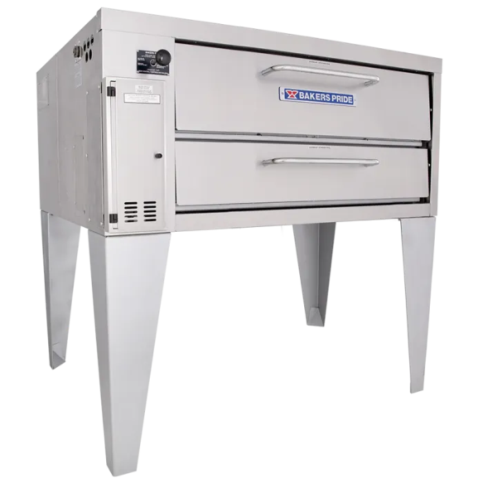 The Bakers PrideĀ® model 451 standard-depth gas pizza oven is designed for all your high-volume baking needs. The single oven chamber features a Cordierite deck with 8" deck height and independently controlled top and bottom heat dampers for perfectly balanced results.This 66" wide model is constructed with heavy-duty angle iron frame, which is fully welded to allow for stacking up to three ovens. The oven exterior is heavy-duty stainless steel and fully insulated for cooler outer temperatures and consistent interior temperatures.