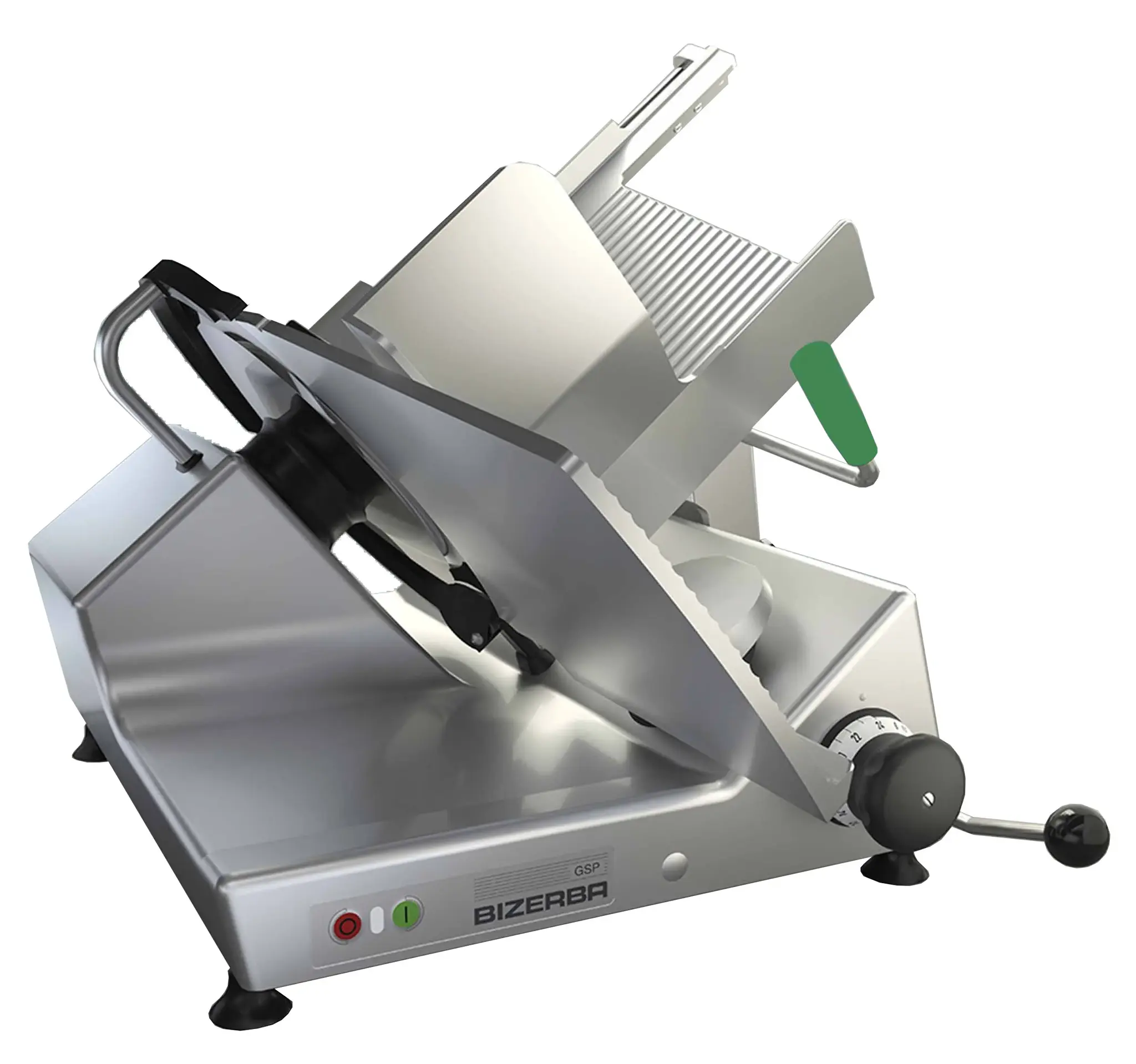 Revolutionize your slicing experience with the Bizerba GSP H I 150 Manual Heavy Duty Illuminated Safety Slicer. Designed specifically for the demanding environment of a restaurant kitchen, this slicer combines precision, safety, and durability to meet all your slicing needs. The Bizerba GSP H I 150 features a robust 13-inch blade, ensuring consistent and precise cuts every time. Its seamless anodized aluminum construction not only provides a sleek, modern look but also ensures easy cleaning and long-lasting durability. The high carriage with a 25-degree incline towards the operator and a 40-degree gravity feed makes slicing effortless and efficient, reducing operator fatigue. Safety is paramount with the Bizerba GSP H I 150. It comes equipped with 8-safety interlocks and a thumb guard measuring 5.8 inches wide, providing maximum protection during operation. The removable pusher-plate and remote sharpener with a spring-loaded dial add to the convenience and safety, allowing for easy maintenance and consistent blade sharpness. With a slice thickness range of 0 to 0.94 inches, this slicer offers versatility for various slicing needs, from ultra-thin cuts to thicker slices. Powered by a 1/2 HP motor and operating on 120v/60/1-ph with 3.5 amps and 0.4kW, it ensures reliable performance in a busy kitchen setting. The cord with NEMA 5-15P plug makes it easy to set up and use. Certified by ETL-Sanitation, UL-157 gaskets & seals, cETLus, and DGUV safety tested, the Bizerba GSP H I 150 meets the highest standards of safety and sanitation, making it an ideal choice for any restaurant. Upgrade your kitchen with the Bizerba GSP H I 150 and experience unparalleled slicing efficiency and safety.