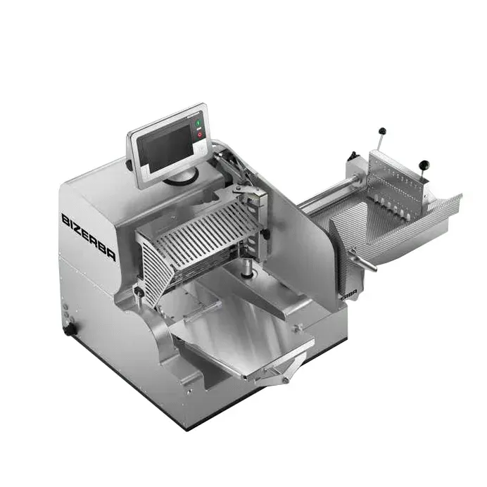 The Bizerba Vertical Slicing System features a configurable touch display and digital slicing control, allowing for precise adjustments to slice thickness from 0.01 inch to 0.5 inch. The integrated depositing table comes with a portion scale for target weight control, ranging from 50 to 2000 grams with 1-gram accuracy, making portion control effortless.