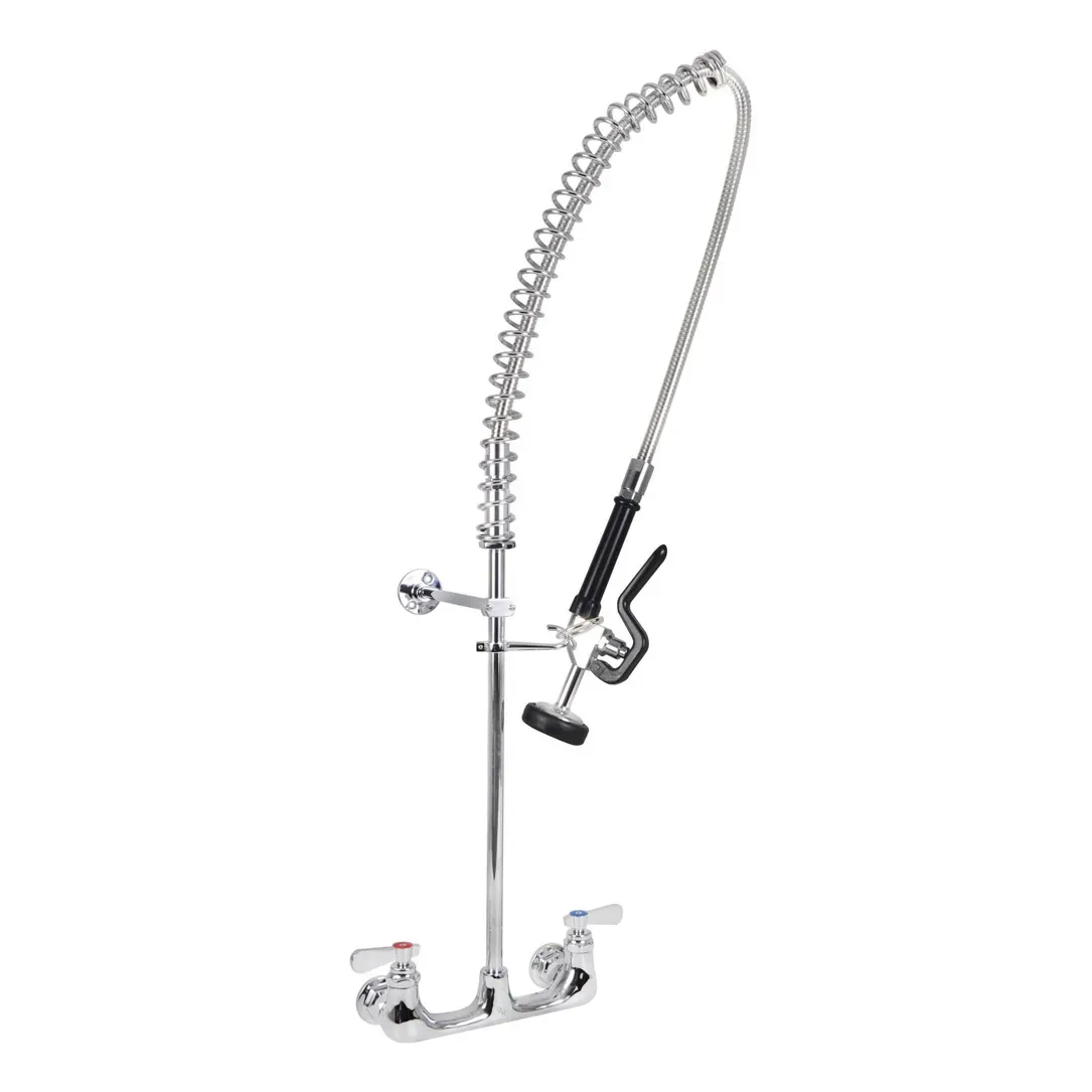 Discover kitchen perfection with the BK Resources, BKF-SMPR-WB-G Pre-Rinse Faucet Assembly. This high-quality pre-rinse assembly is designed to meet the demands of a busy commercial restaurant kitchen. With its OptiFlow technology, this faucet ensures a powerful and efficient flow of water, making it easier to rinse dishes and utensils. The splash-mounted design and 8" on center spacing provide convenience and flexibility during installation. The triple ply hose and 1/4 turn ceramic cartridges guarantee durability and smooth operation. The integral check valves prevent backflow, ensuring the safety and cleanliness of your water supply. The color-coded hot and cold indicators make it easy to adjust the water temperature to your desired setting. With its lead-free construction and NSF and cCSAus certifications, you can trust that this pre-rinse faucet assembly meets the highest standards of quality and safety. Upgrade your restaurant kitchen with the BK Resources, BKF-SMPR-WB-G Pre-Rinse Faucet Assembly and experience the perfect blend of functionality and reliability.
