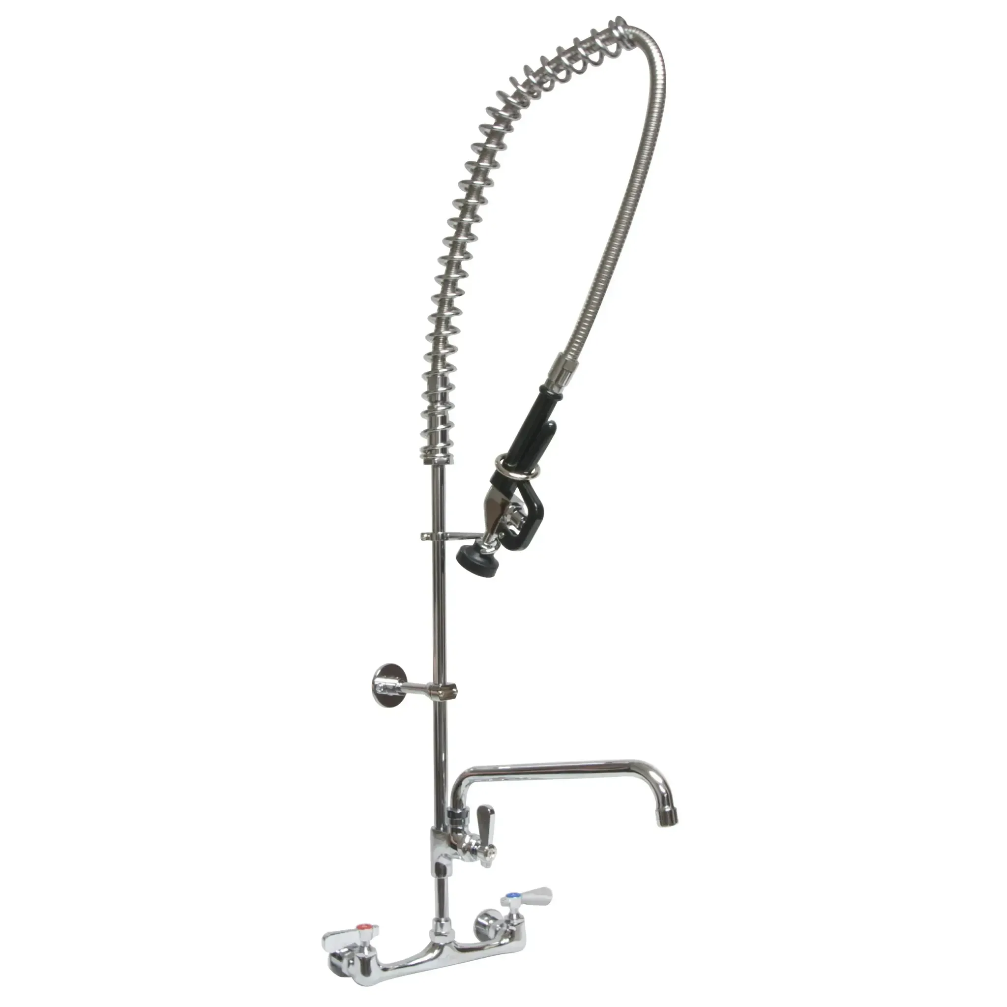 Discover kitchen perfection with the BK Resources, BKF-VSMPR-WB-AF6-G Pre-Rinse Faucet Assembly, with Add On Faucet. This high-quality pre-rinse assembly is designed to meet the demands of a busy commercial restaurant kitchen. With its triple ply hose and 1/4 turn ceramic valves, this assembly ensures durability and long-lasting performance. The splash-mounted design and 8" OC spacing make it easy to install and use in any kitchen setup. The add-on faucet with a 6" swing spout provides additional versatility, allowing you to easily fill pots and pans or rinse off dishes. The 12" wall bracket ensures stability and support. Plus, with its lead-free construction, you can have peace of mind knowing that this pre-rinse assembly is safe for use in any foodservice establishment. Upgrade your kitchen with the BK Resources, BKF-VSMPR-WB-AF6-G Pre-Rinse Faucet Assembly, with Add On Faucet and experience the perfect blend of functionality and reliability.