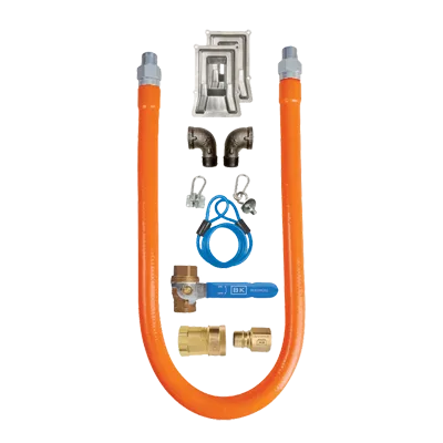 Achieve kitchen supremacy with the BK Resources BKG-GHC-7536-SP3 Gas Connector Hose Kit. This high-quality kit is designed to meet the demands of commercial restaurant use, ensuring safety and efficiency in your kitchen. The kit includes a 36" x 3/4" I.D. stainless steel hose with a radial wrap and protective translucent coating, providing durability and protection against wear and tear. The Set-Pro Connection Kit #3 comes complete with all the necessary components, including Set Pro fittings, a shut-off valve, a quick disconnect, a restraining cable, and hardware. The kit also includes male-to-female 90-degree elbows, screws, and plastic anchors for easy installation. With a 5-year warranty and cCSAus certification, you can trust the reliability and performance of this gas connector hose kit. Upgrade your kitchen with the BK Resources BKG-GHC-7536-SP3 Gas Connector Hose Kit and experience the peace of mind that comes with a safe and efficient gas connection.