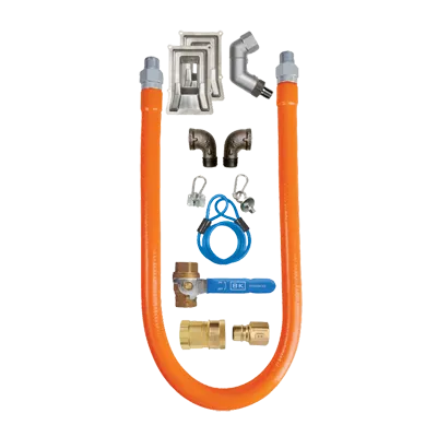 Transform your food service with the BK Resources BKG-GHC-7548-SWSP3 Gas Connector Hose Kit. This high-quality kit is designed to meet the demands of a commercial restaurant, ensuring safety and efficiency in your kitchen. The kit includes a 48" x 3/4" I.D. stainless steel hose with a radial wrap and protective translucent coating, providing durability and longevity. With the Set-Pro Connection Kit, you'll have everything you need for a seamless installation, including Set-Pro fittings, a Swivel Pro, a shut-off valve, a quick disconnect, a restraining cable, and all necessary hardware. The kit also includes male-to-female 90 elbows, screws, and plastic anchors for added convenience. With a 5-year warranty and cCSAus certification, you can trust the quality and reliability of this gas connector hose kit. Upgrade your restaurant's gas connection system with the BK Resources BKG-GHC-7548-SWSP3 Gas Connector Hose Kit and experience enhanced safety and performance in your kitchen.