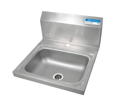 Streamline your restaurant cooking operations with the BK Resources, BKHS-D-1410-1 Hand Sink. This wall-mounted sink is designed to optimize space in your commercial kitchen while providing a convenient and hygienic handwashing solution. The sink features a 14" wide x 10" front-to-back x 5" deep bowl, allowing for easy handwashing and dishwashing. The single deck mount faucet hole ensures easy installation of a faucet, while the marine edge and 8" high backsplash help contain water and prevent spills. Made of durable 304 stainless steel, this hand sink is built to withstand the demands of a busy restaurant environment. It also includes a basket drain and wall mounting hardware for added convenience. NSF certified, this hand sink meets the highest standards of sanitation and hygiene. Upgrade your restaurant's kitchen with the BK Resources, BKHS-D-1410-1 Hand Sink and ensure a clean and efficient workspace.