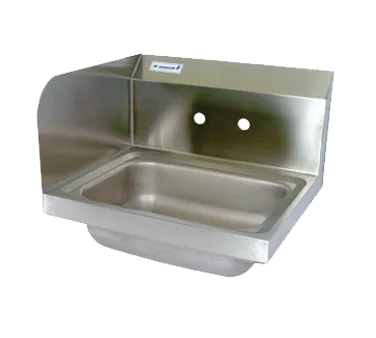 Cook with confidence with the BK Resources BKHS-W-1410-LS Hand Sink. This wall-mounted hand sink is designed specifically for commercial restaurant use, ensuring durability and functionality. The 304 stainless steel construction guarantees long-lasting performance, even in the busiest kitchen environments. The 14" wide x 10" front-to-back x 5" deep bowl provides ample space for handwashing, while the 4" O.C splash mount faucet holes make it easy to install a faucet of your choice. The marine edge and side splash on the left help contain water and prevent spills, keeping your kitchen clean and safe. This hand sink also includes a basket drain and wall mounting hardware for easy installation. NSF certified, this BK Resources hand sink meets the highest standards of sanitation and hygiene. Upgrade your restaurant's handwashing station with the BK Resources BKHS-W-1410-LS Hand Sink.