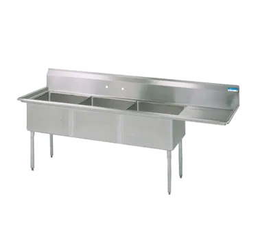 Fuel your passion for cooking with the BK Resources, BKS-3-15-14-15R Sink. This three-compartment sink is designed to meet the demands of a busy commercial restaurant kitchen. With its 62-1/2" width, it provides ample space for washing, rinsing, and sanitizing dishes, utensils, and cookware. The 15" deep compartments are perfect for accommodating large pots and pans, while the 15" drainboard on the right offers a convenient space for drying dishes. The 9" backsplash helps to keep your walls clean and protected, while the 8" OC splash mount faucet holes allow for easy installation of a faucet. Made of durable 18/304 stainless steel, this sink is built to withstand the rigors of a commercial kitchen. The galvanized steel legs and adjustable high impact corrosion-resistant feet ensure stability and durability. NSF certified, this sink meets the highest standards of sanitation and hygiene. Upgrade your kitchen with the BK Resources, BKS-3-15-14-15R Sink and experience the convenience and efficiency it brings to your restaurant operations.