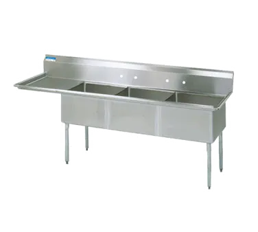Deliver food perfection with the BK Resources, BKS-3-24-14-24L Sink, (3) Three Compartment. This sink is designed to meet the demands of a busy commercial restaurant, ensuring efficient food preparation and cleaning processes. With its three compartments, measuring 24" wide x 24" front-to-back x 14" deep, this sink provides ample space for washing, rinsing, and sanitizing dishes, utensils, and cookware. The 24" drainboard on the left offers a convenient area for drying and stacking items. Made from durable 18/304 stainless steel, this sink is built to withstand the rigors of a commercial kitchen, while the galvanized steel legs provide stability and support. The adjustable high impact corrosion-resistant feet ensure a level working surface. Additionally, the sink features a 9" backsplash and rolled front and side edges for easy cleaning and maintenance. Complete with basket drains, this NSF-certified sink is a reliable and essential addition to any commercial restaurant.