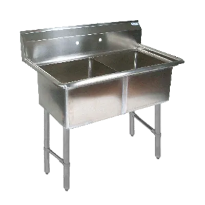 Master your restaurant's kitchen with the BK Resources, BKS6-2-24-14S Sink. This two-compartment sink is designed to meet the demands of a busy commercial restaurant. With an overall size of 53-1/8"W x 29-1/2"D x 44-1/16"H, it provides ample space for washing and rinsing dishes. The 24" wide x 24" front-to-back x 14" deep compartments are perfect for accommodating large pots, pans, and utensils. The sink features a 10" backsplash and 8 OC splash mount faucet holes, ensuring a clean and sanitary workspace. Made of 16/304 stainless steel, the deck and bowls are durable and easy to clean. The rounded front and side edges add a touch of elegance to the sink. It also includes basket drains and adjustable stainless steel over plastic bullet feet for added convenience. Trust BK Resources to deliver high-quality and reliable kitchen equipment for your restaurant.