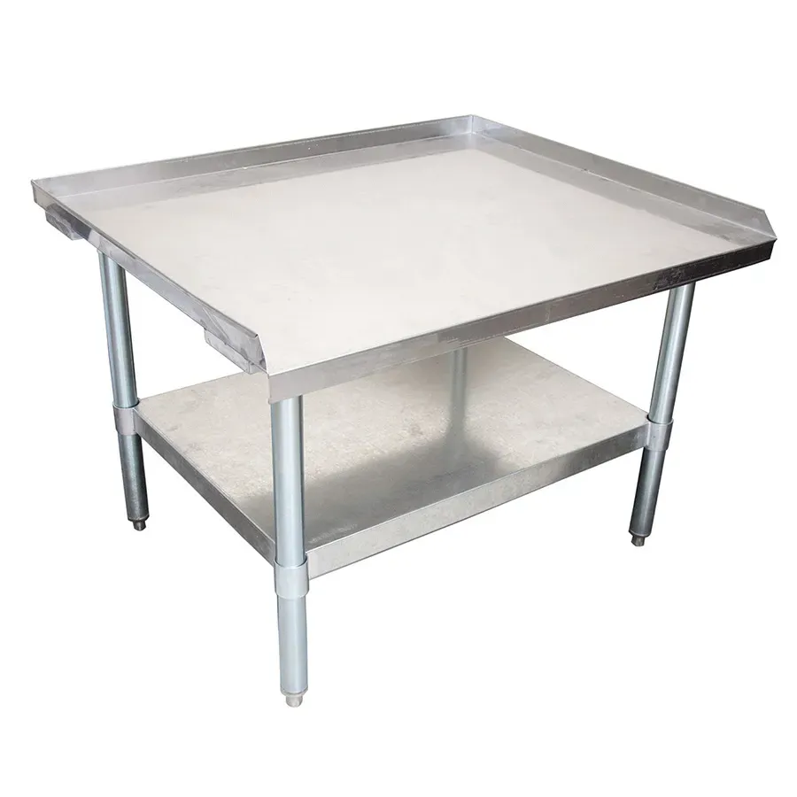 Cook with confidence and flair using the BK Resources, EETS-4830 Equipment Stand. This economy equipment stand is designed to meet the demands of a busy commercial restaurant kitchen. With its 48"W x 30"D dimensions and 23" working height, it provides ample space for food preparation and storage. The 18/430 stainless steel top is reinforced with support channels, ensuring durability and stability. The three-sided 1-1/2" riser with hemmed edges helps to contain spills and prevent accidents. The adjustable galvanized undershelf allows for customizable storage options, while the galvanized legs and adjustable stainless steel feet provide stability on any surface. This equipment stand is NSF certified, guaranteeing its safety and sanitation standards. Whether you're a professional chef or a restaurant owner, the BK Resources, EETS-4830 Equipment Stand is a reliable and practical addition to your kitchen.