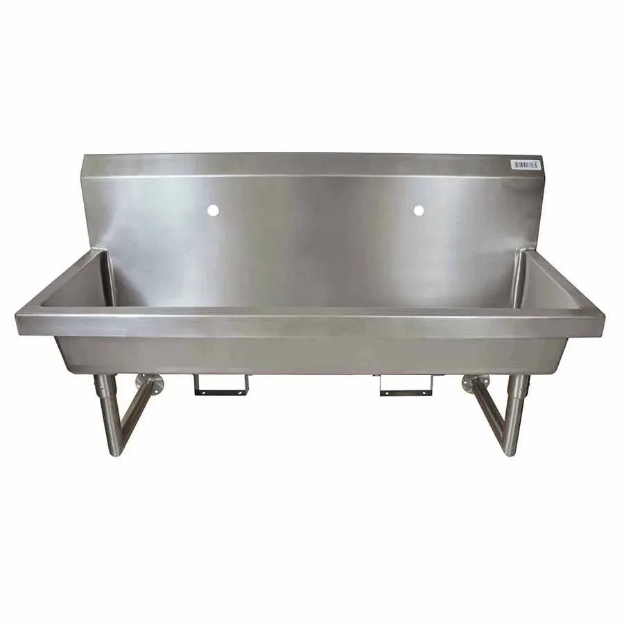 Elevate your cuisine with the BK Resources MSHS-48W1B Handwash Sink. This two-station, wall-mounted sink is designed specifically for commercial restaurant use, making it an essential addition to any professional kitchen. The sink features two single hole splash mount faucet holes, allowing for easy installation of faucets to meet your specific needs. With a spacious 48"W x 19-7/8" front-to-back x 8" deep bowl, this sink provides ample space for multiple users to wash their hands simultaneously. The knee valve bracket ensures convenient and hygienic operation, while the 14/304 stainless steel sink and 18 gauge stainless steel legs and supports guarantee durability and longevity. The included basket drain adds convenience and prevents clogging. NSF certified, this handwash sink meets the highest standards of cleanliness and sanitation. Upgrade your restaurant's hygiene standards with the BK Resources MSHS-48W1B Handwash Sink.