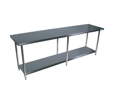 Create culinary magic with the BK Resources SVT-1896 Work Table. This stainless steel work table is designed to meet the demands of a busy commercial restaurant kitchen. With a spacious 96"W x 18"D stainless steel top, it provides ample space for food preparation, making it easier to create culinary masterpieces. The turndown edges on all sides and reinforced channels ensure durability and prevent spills. The adjustable stainless steel undershelf allows for convenient storage of kitchen essentials, keeping everything within reach. The 1-5/8" dia. stainless steel legs provide stability and support, while the stainless steel over plastic adjustable bullet feet ensure easy leveling on any surface. NSF certified, this work table meets the highest standards of cleanliness and sanitation. Trust BK Resources, a reputable vendor in the industry, and elevate your restaurant's efficiency and productivity with the SVT-1896 Work Table.