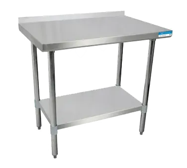 Fuel your restaurant's success with the BK Resources SVTR-1830 Work Table. This stainless steel work table is designed to meet the demands of a busy commercial kitchen. The 18/430 stainless steel top is not only durable but also features turndown edges on the front and sides, ensuring a safe and clean work surface. Reinforced with channels, this work table can withstand heavy use and is built to last. The 1-1/2" rear riser provides additional support and prevents items from falling off the back. The adjustable stainless steel undershelf offers convenient storage space for utensils, ingredients, and other kitchen essentials. With 1-5/8" dia. stainless steel legs and stainless steel over plastic adjustable bullet feet, this work table is stable and can be easily leveled on any surface. NSF certified, you can trust the quality and hygiene of this work table. Upgrade your kitchen with the BK Resources SVTR-1830 Work Table and experience enhanced efficiency and productivity.