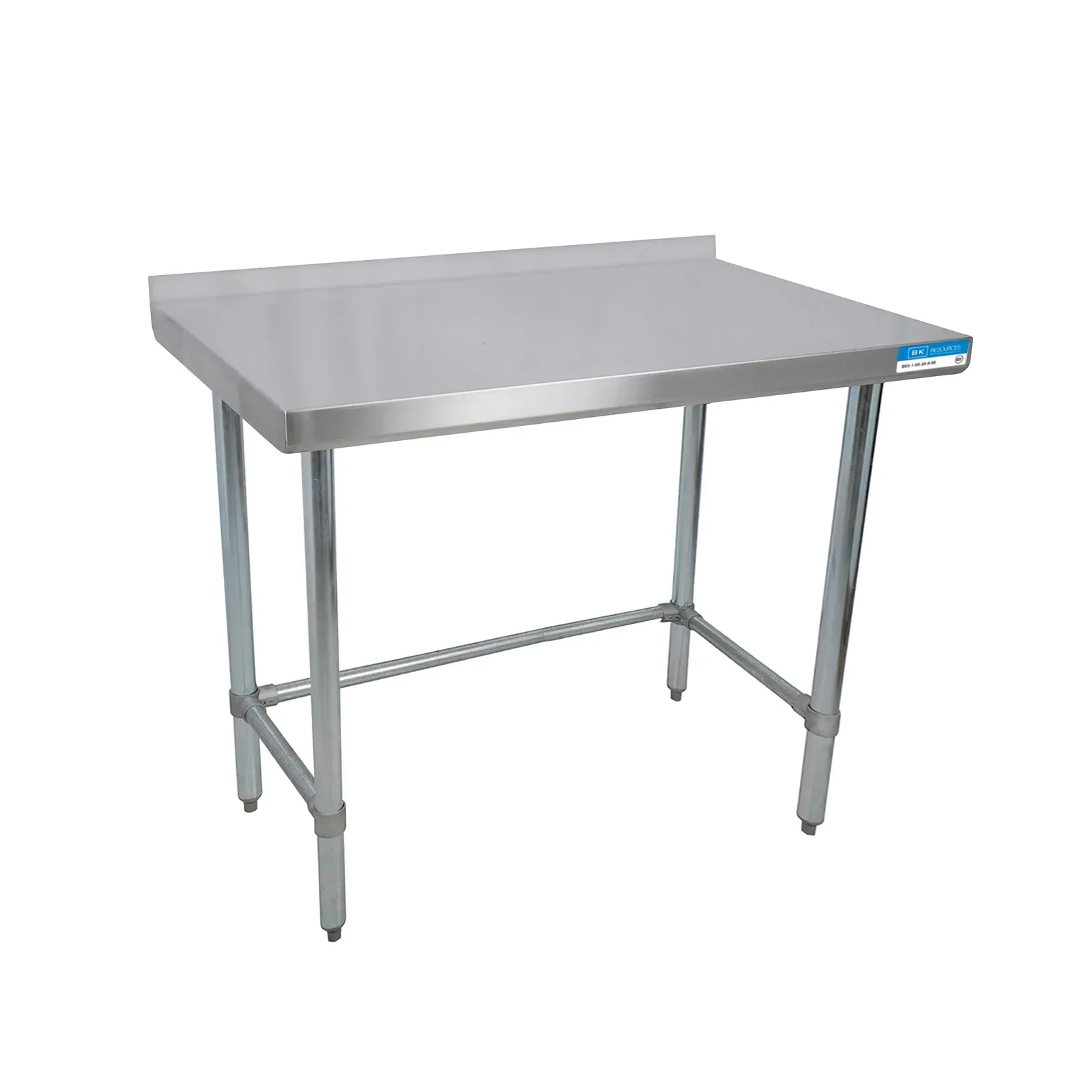 Cooking at its finest begins with the BK Resources SVTROB-9624 Work Table. This durable and versatile work table is designed to meet the demands of a busy commercial restaurant kitchen. With its 18/430 stainless steel top, turndown edges on the front and sides, and reinforced channels, this work table is built to withstand the rigors of daily use. The 1-1/2" rear riser helps to keep items from falling off the back, while the open base with stainless steel side and rear bracing provides stability and strength. The adjustable stainless steel bullet feet ensure that the table is level and secure on any surface. With its spacious 96"W x 24"D dimensions, this work table offers ample space for food preparation, plating, and storage. Whether you're a professional chef or a restaurant owner, the BK Resources SVTROB-9624 Work Table is a must-have addition to your kitchen.