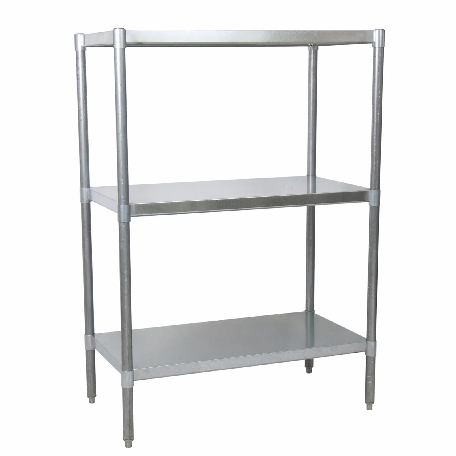 Craft culinary wonders with the BK Resources, VSU5-5524, Shelving Unit, Solid Flat. This dry storage shelving unit is designed to optimize your restaurant's storage space and keep your ingredients organized. With its generous dimensions of 55"W x 24"D x 60"H, this unit provides ample room for all your culinary essentials. The three adjustable shelves allow you to customize the shelving unit to fit your specific needs, whether you're storing pots and pans, dry goods, or kitchen appliances. Made with galvanized shelves and legs, this shelving unit is built to withstand the demands of a busy commercial kitchen. The adjustable bullet feet ensure stability on any surface. With BK Resources' reputation for quality and durability, you can trust that this shelving unit will stand the test of time. Upgrade your restaurant's storage capabilities with the BK Resources, VSU5-5524, Shelving Unit, Solid Flat.