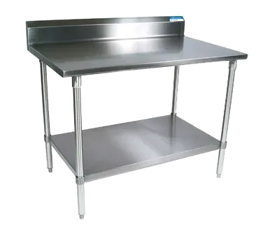 Boost your restaurant's performance with the BK Resources VTTR5-3024 Work Table. This stainless steel work table is designed to enhance efficiency and durability in a commercial restaurant setting. The 18/430 stainless steel top with turndown edges on the front and sides provides a sturdy and easy-to-clean surface for food preparation. The table is reinforced with channels for added strength, ensuring it can withstand the demands of a busy kitchen. The 5" backsplash helps to prevent spills and messes from reaching the floor, while the adjustable galvanized undershelf offers convenient storage space for kitchen essentials. The 1-5/8" dia. galvanized legs with adjustable high-impact corrosion-resistant feet provide stability and allow for easy leveling on uneven surfaces. NSF certified, this work table meets the highest standards of cleanliness and sanitation. Upgrade your restaurant's workspace with the BK Resources VTTR5-3024 Work Table.