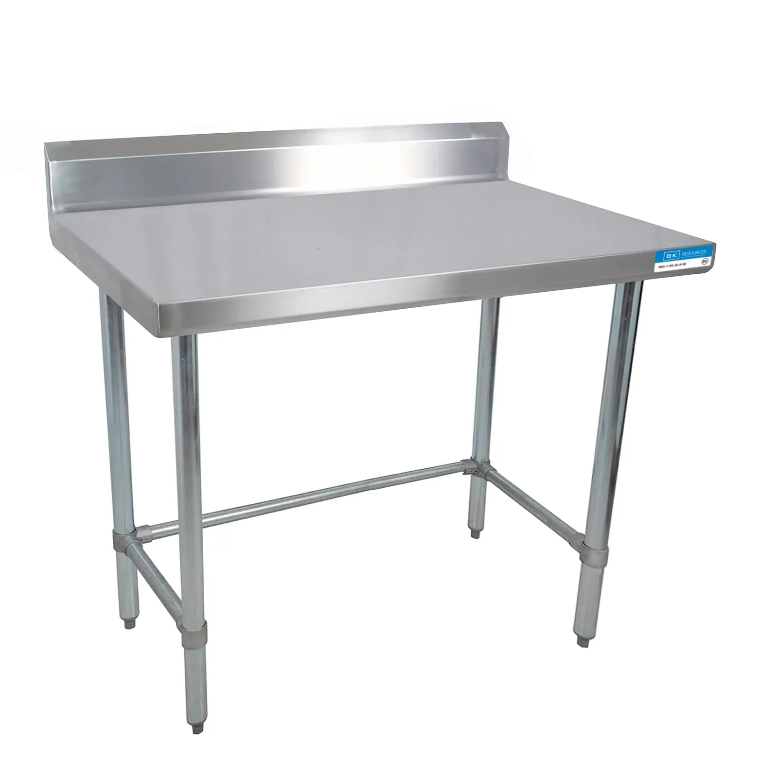Discover kitchen perfection with the BK Resources, VTTR5OB-2424 Work Table. This stainless steel work table is designed to meet the demands of a commercial restaurant setting. The 18/430 stainless steel top with turndown edges on the front and sides provides a durable and easy-to-clean surface for food preparation. The table is reinforced with channels and features a 5" backsplash to prevent spills and messes. The open base with galvanized side and rear bracing ensures stability and strength, while the 1-5/8" dia. galvanized legs can be adjusted to the desired height. The high impact corrosion resistant feet add further durability and convenience. With its NSF certification, this work table is guaranteed to meet the highest standards of cleanliness and safety. Upgrade your kitchen with the BK Resources, VTTR5OB-2424 Work Table and experience the perfect blend of functionality and style.