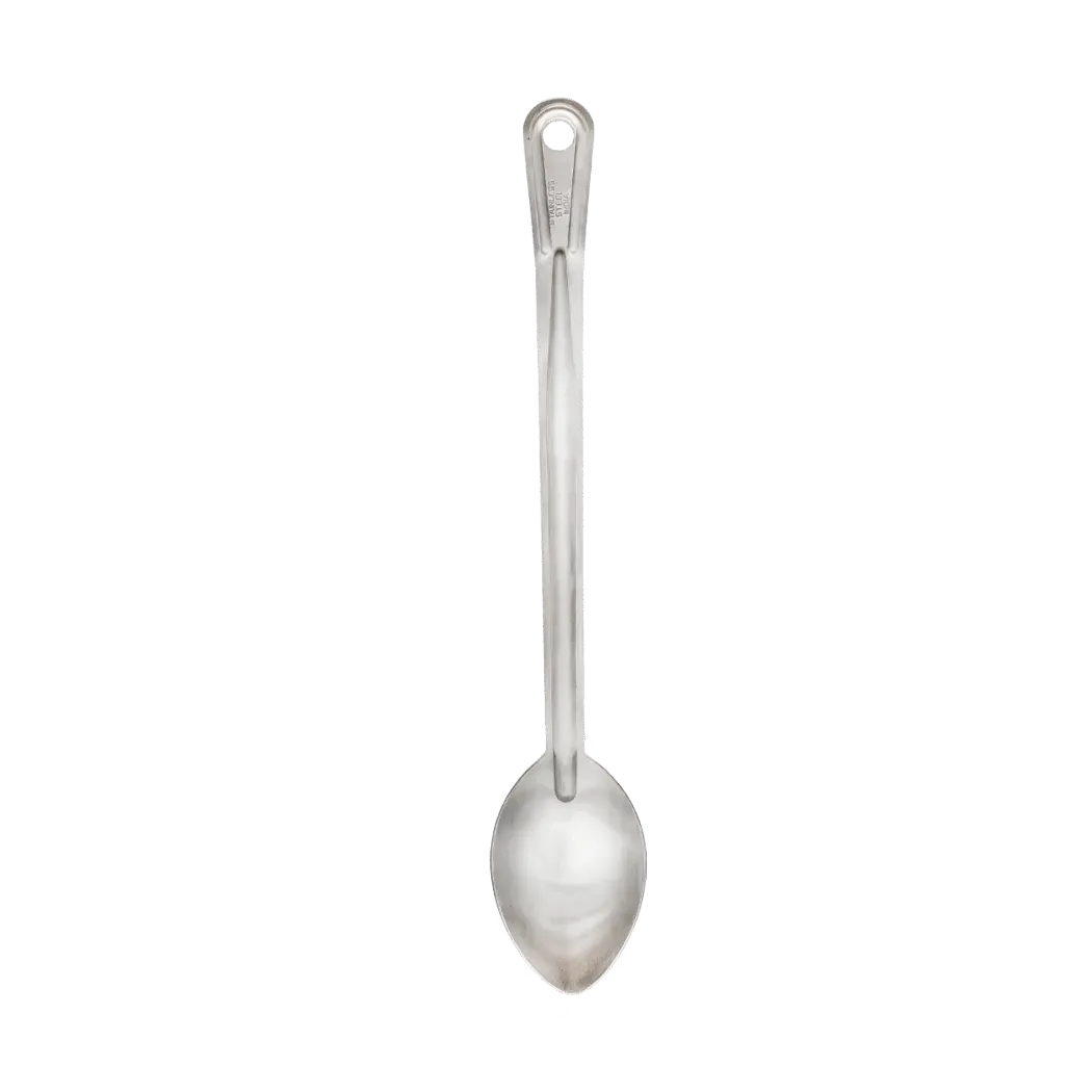 Create masterpieces with state-of-the-art utensils like the Browne Foodservice, 4765, Kitchen Utensils - Basting Spoons. Designed for commercial restaurant use, this Renaissance Spoon is a must-have tool for any professional chef. With its curved solid stainless steel construction, this 13-inch spoon offers durability and precision, allowing you to baste, stir, and serve with ease. Whether you're sautéing vegetables, basting a succulent roast, or plating a delicate dessert, this basting spoon is the perfect companion. Its long handle provides a comfortable grip, while the curved design allows for easy access to the corners of pans and pots. Enhance your culinary creations and elevate your restaurant's efficiency with the Browne Foodservice, 4765, Kitchen Utensils - Basting Spoons.