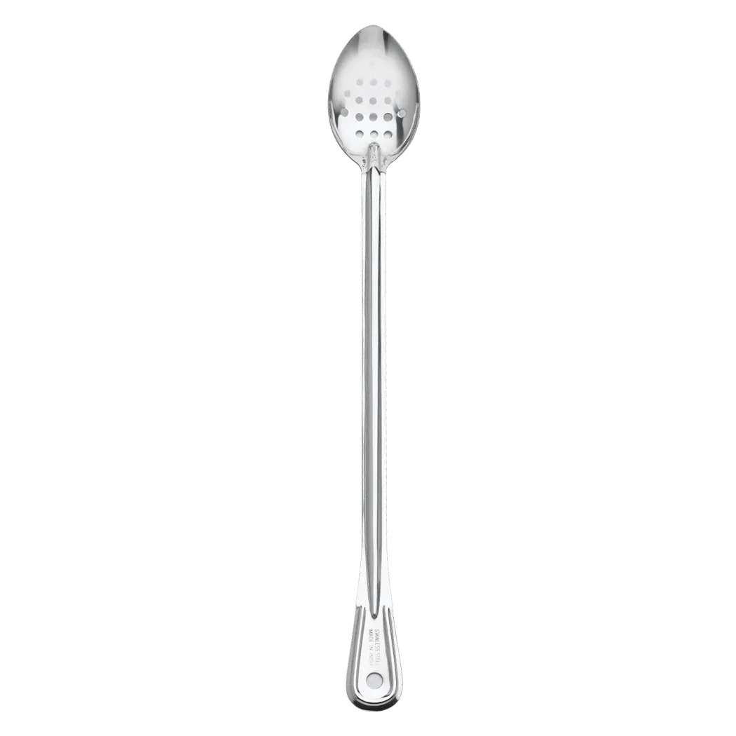 Enhance your commercial restaurant offerings with the Browne Foodservice 4784P Kitchen Utensils - Basting Spoons. Designed to meet the demands of a busy kitchen, this spoon is a must-have tool for any professional chef. With its perforated stainless steel construction and extra-long handle, it offers durability and convenience in one. The perforations allow for easy draining of liquids, making it perfect for basting meats or serving steamed vegetables. The 21-inch length ensures that you can reach deep into pots and pans without getting too close to the heat. Don't settle for anything less than state-of-the-art tools to elevate your culinary creations. Invest in the Browne Foodservice 4784P Kitchen Utensils - Basting Spoons today and experience the difference in your restaurant's efficiency and quality.