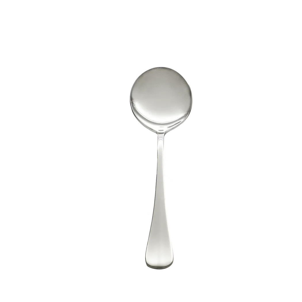 Upgrade your commercial restaurant with the Browne Foodservice 502317 Flatware 18/0 - BISTRO Flatware. Crafted with 18/0 stainless steel, this bistro bouillon spoon is designed to withstand the demands of a busy kitchen. Measuring 6.2 inches (15.8cm), it is the perfect size for serving soups, stews, and broths.