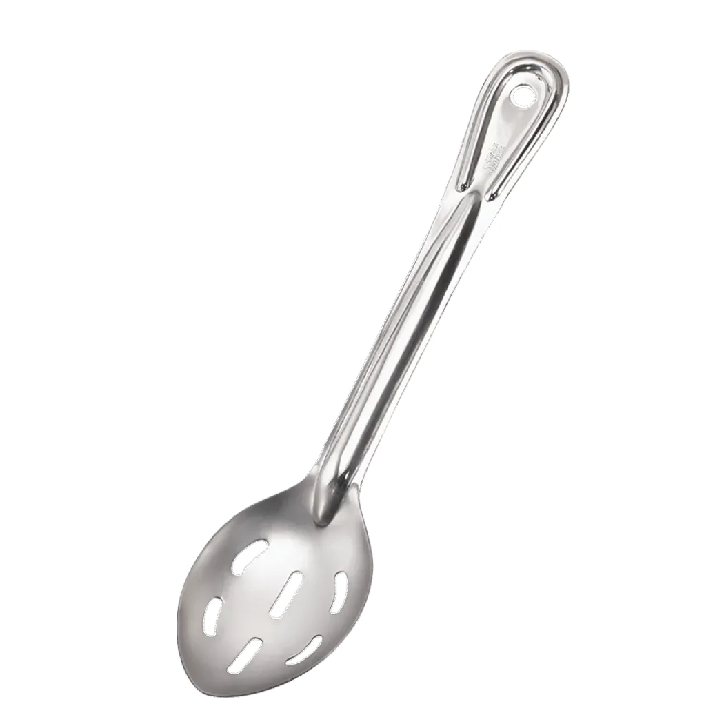 Upgrade your commercial restaurant with the Browne Foodservice 572153 Kitchen Utensils - Basting Spoons. Crafted by Browne Foodservice, a trusted vendor in the industry, this medium gauge slotted spoon is a must-have for any professional kitchen. With its 15" stainless steel construction, it offers durability and longevity, ensuring it can withstand the demands of a busy restaurant environment. The slotted design allows for easy draining and serving of foods, making it perfect for basting meats, serving vegetables, or skimming soups. Whether you're a chef, caterer, or restaurant owner, this basting spoon is an essential tool that will enhance your culinary operations. Upgrade your kitchen with the best-in-class essentials and experience the difference in efficiency and performance.