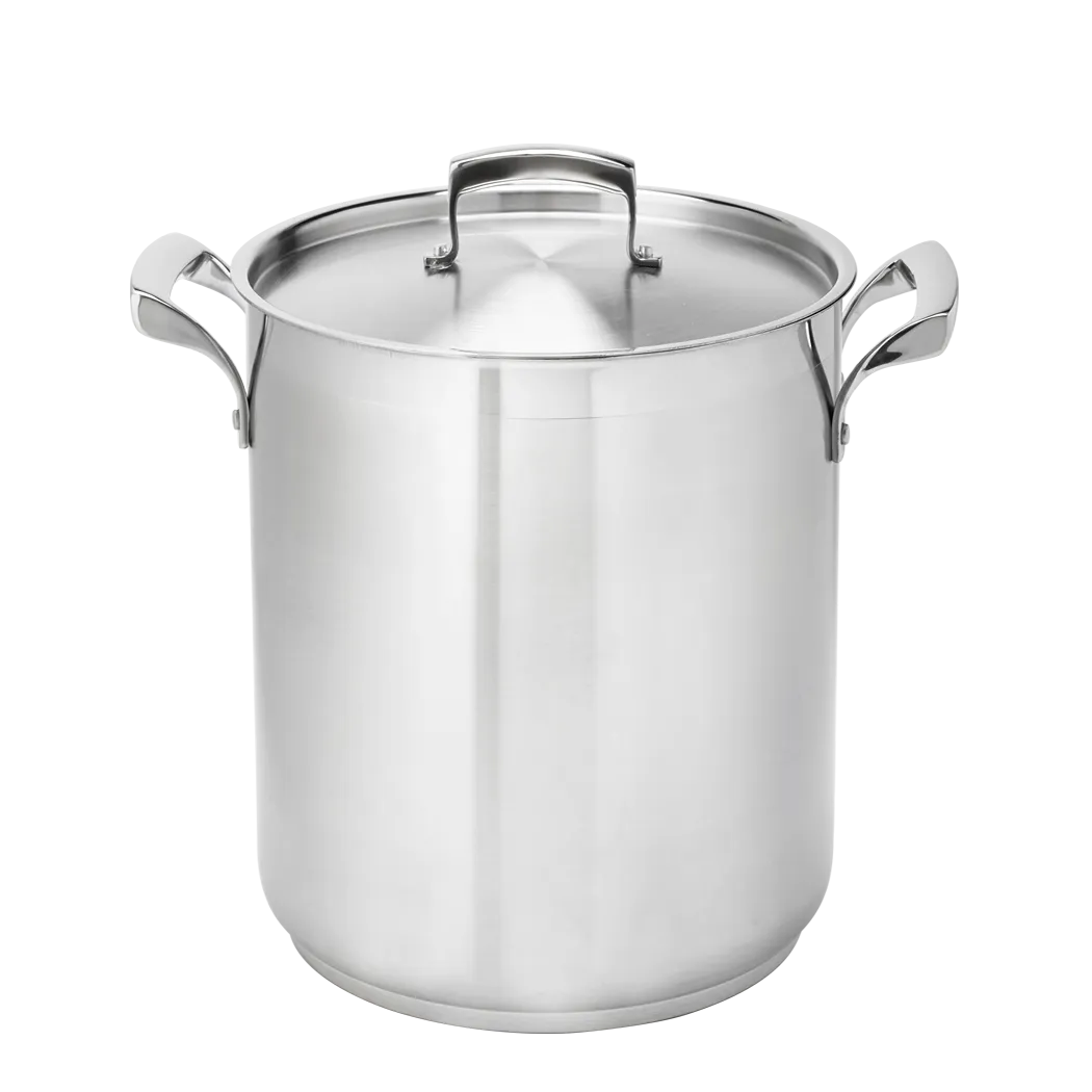 Introducing the Browne Foodservice 5723960 Cookware - THERMALLOY Stainless, the perfect addition to any commercial restaurant kitchen. This 60qt stainless steel stock pot is designed to ensure precision in every task. With its deep construction and NSF certification, it is ideal for cooking large quantities of soups, stews, and stocks. The THERMALLOY stainless steel material provides excellent heat distribution, allowing for even cooking and preventing hot spots. Its durable construction ensures long-lasting performance, even in the busiest kitchen environments. Upgrade your restaurant kitchen with this high-quality stock pot and experience the convenience and efficiency it brings to your cooking processes.