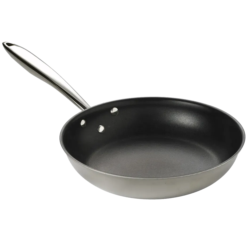 Upgrade your commercial restaurant kitchen with the Browne Foodservice 5724098 Cookware - THERMALLOY Clad Tri-Ply. This top-of-the-line fry pan is a must-have for any professional chef. With its THERMALLOY SS Tri-ply construction and Excalibur coating, this 11x2" / 28x5cm fry pan ensures even heat distribution and exceptional durability. The tri-ply design combines the superior heat conductivity of aluminum with the strength and durability of stainless steel, making it perfect for high-volume cooking in a commercial setting. The Excalibur coating provides a non-stick surface, reducing the need for excessive oil or butter, resulting in healthier and more flavorful dishes. Upgrade your cooking game with the Browne Foodservice 5724098 Cookware - THERMALLOY Clad Tri-Ply and experience professional-quality results every time.