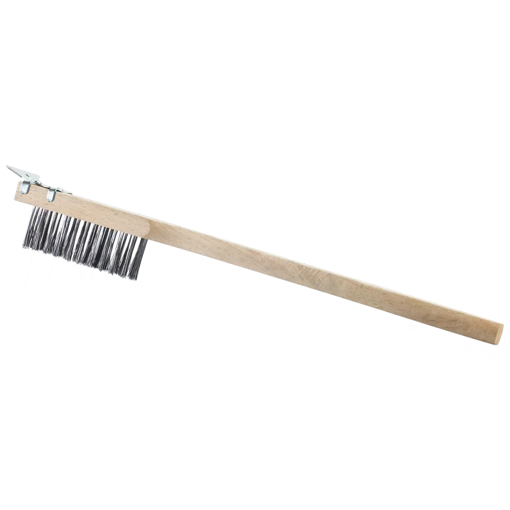 Maximize productivity in the kitchen with Browne Foodservice's Clean Up - Brushes. Designed for commercial restaurant use, this wire brush with a long handle and scraper is a must-have tool for any busy kitchen. The Browne Foodservice 574267 model offers exceptional durability and functionality, allowing you to effortlessly tackle tough cleaning tasks. Whether you need to remove stubborn grime from grills, scrape off burnt-on food, or scrub hard-to-reach corners, this brush has got you covered. With its sturdy construction and ergonomic design, it provides a comfortable grip and ensures efficient cleaning. Invest in Browne Foodservice's Clean Up - Brushes and experience the difference in cleanliness and efficiency in your commercial restaurant.