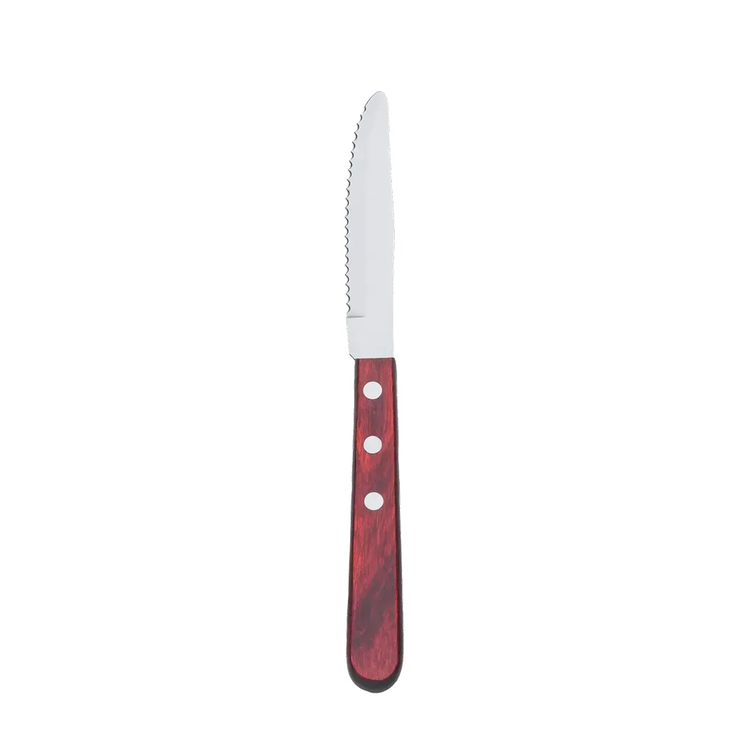 Introducing Browne Foodservice Steak Knives, the perfect addition to any commercial restaurant setting. With a model number of 574338, these steak knives are designed to deliver exceptional performance and durability. Each knife features a 9" stainless steel blade with a rounded edge, ensuring effortless slicing through even the thickest cuts of meat. The pakkawood handle provides a comfortable grip, allowing for precise control and reducing hand fatigue during extended use. Whether you're serving up juicy steaks or succulent roasts, these knives will elevate your dining experience and impress your customers. Don't compromise on quality choose Browne Foodservice Steak Knives for consistent, reliable performance in your commercial restaurant.