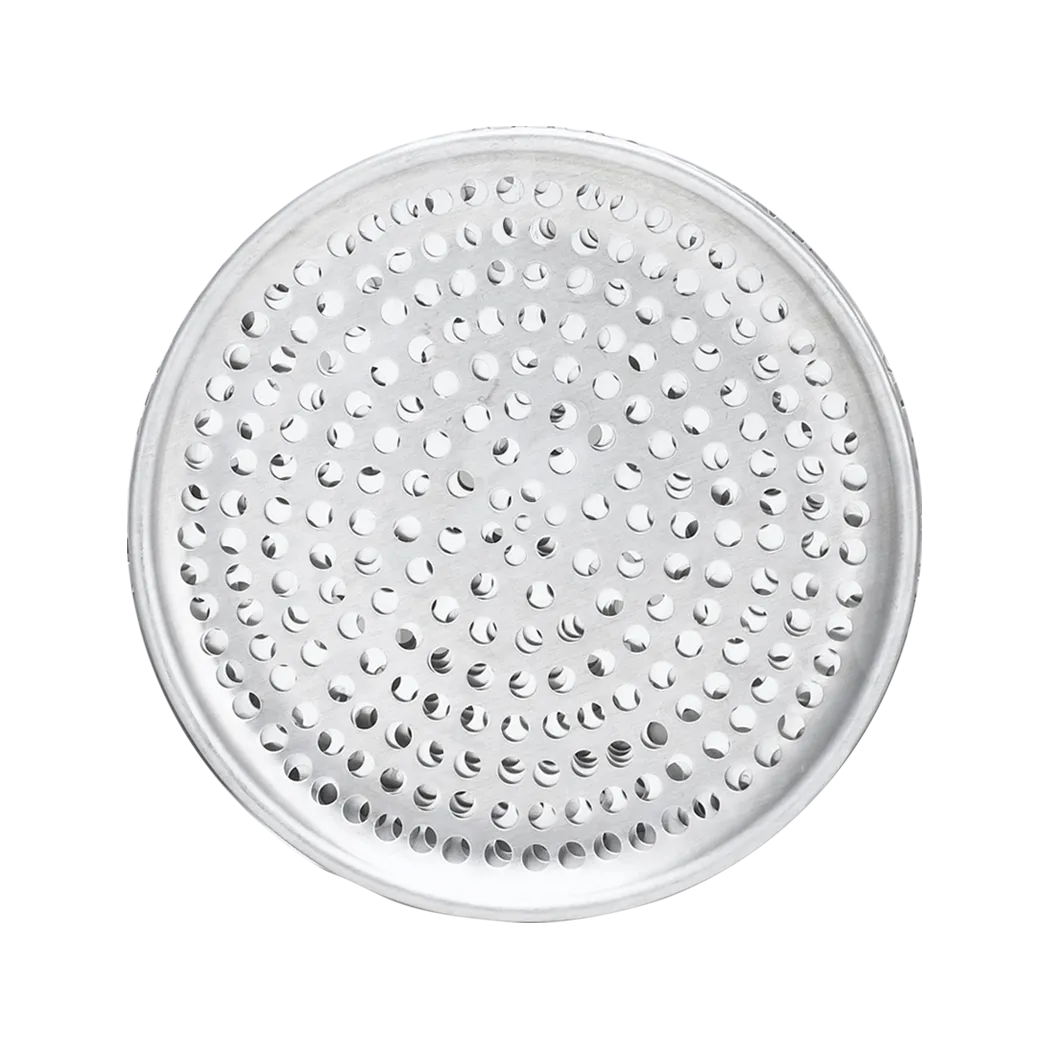 Set apart with innovative solutions, Browne Foodservice presents the 575353 Pizza Tray Aluminum. Designed specifically for commercial restaurant use, this perforated pizza tray is a must-have for any pizzeria or restaurant kitchen. With a diameter of 13 inches (33cm), this tray is the perfect size for baking delicious pizzas to perfection. The perforated design allows for even heat distribution, ensuring a crispy crust every time. Made from durable aluminum, this tray is built to withstand the demands of a busy kitchen. Its lightweight construction makes it easy to handle and clean, saving valuable time and effort. Whether you're baking traditional pizzas or experimenting with unique toppings, the Browne Foodservice 575353 Pizza Tray Aluminum is the ideal choice for achieving professional results. Elevate your pizza game and impress your customers with this high-quality bakeware.