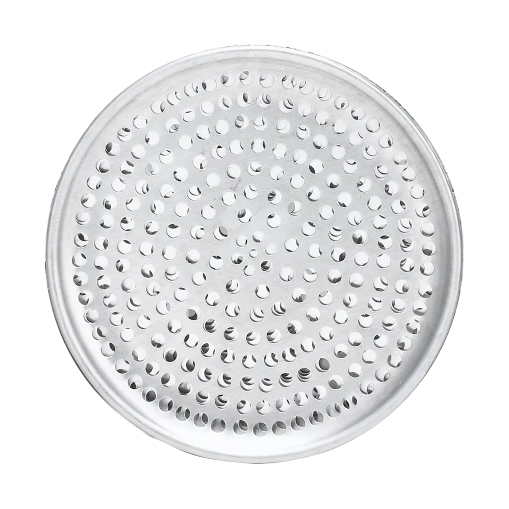 Set the standard with top-tier tools with Browne Foodservice's Pizza Tray Aluminum 15"/38.1cm - Perforated. Designed specifically for commercial restaurant use, this pizza tray is a must-have for any pizzeria or restaurant that serves delicious pizzas. The perforated design allows for even heat distribution, ensuring a perfectly crispy crust every time. Made from high-quality aluminum, this tray is durable and built to withstand the demands of a busy kitchen. With a diameter of 15 inches, it can accommodate large pizzas, making it ideal for serving hungry customers. Whether you're baking a classic Margherita or a loaded meat lover's pizza, this Browne Foodservice pizza tray will help you create mouthwatering pizzas that will keep your customers coming back for more.