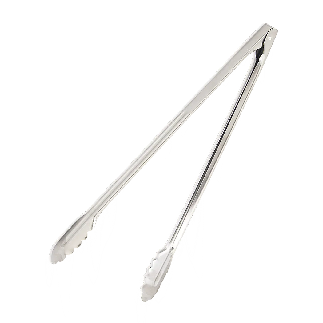 Stay ahead in the culinary landscape with Browne Foodservice's Kitchen Utensils - Tongs. Designed for heavy-duty use in commercial restaurants, these 16" tongs are a must-have tool for any professional chef. Made from high-quality stainless steel with a satin finish, they offer durability and a sleek appearance. Their long length provides a comfortable grip and keeps hands away from heat, making them ideal for busy kitchen environments. Whether you're flipping steaks on the grill or plating delicate pastries, Browne Foodservice's Kitchen Utensils - Tongs are the perfect tool to elevate your culinary creations.