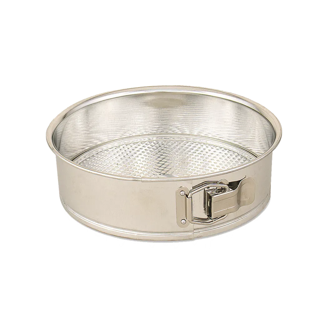 Craft wonders with professional-grade utensils with Browne Foodservice's Bakeware - Bakeware, Cook-It-In. Model number 746073 is a versatile addition to any commercial restaurant kitchen. This tin springform cake pan, measuring 9.25", is designed to deliver exceptional results every time. Its durable construction ensures even heat distribution, preventing hot spots and ensuring consistent baking. The pan's non-stick surface allows for easy release of delicate cakes, while its sturdy latch securely holds the sides together during baking. With Browne Foodservice's Bakeware - Bakeware, Cook-It-In, you can create flawless cheesecakes, tortes, and other delicate desserts that will impress your customers. Elevate your baking game and delight your customers with this professional-grade springform cake pan.