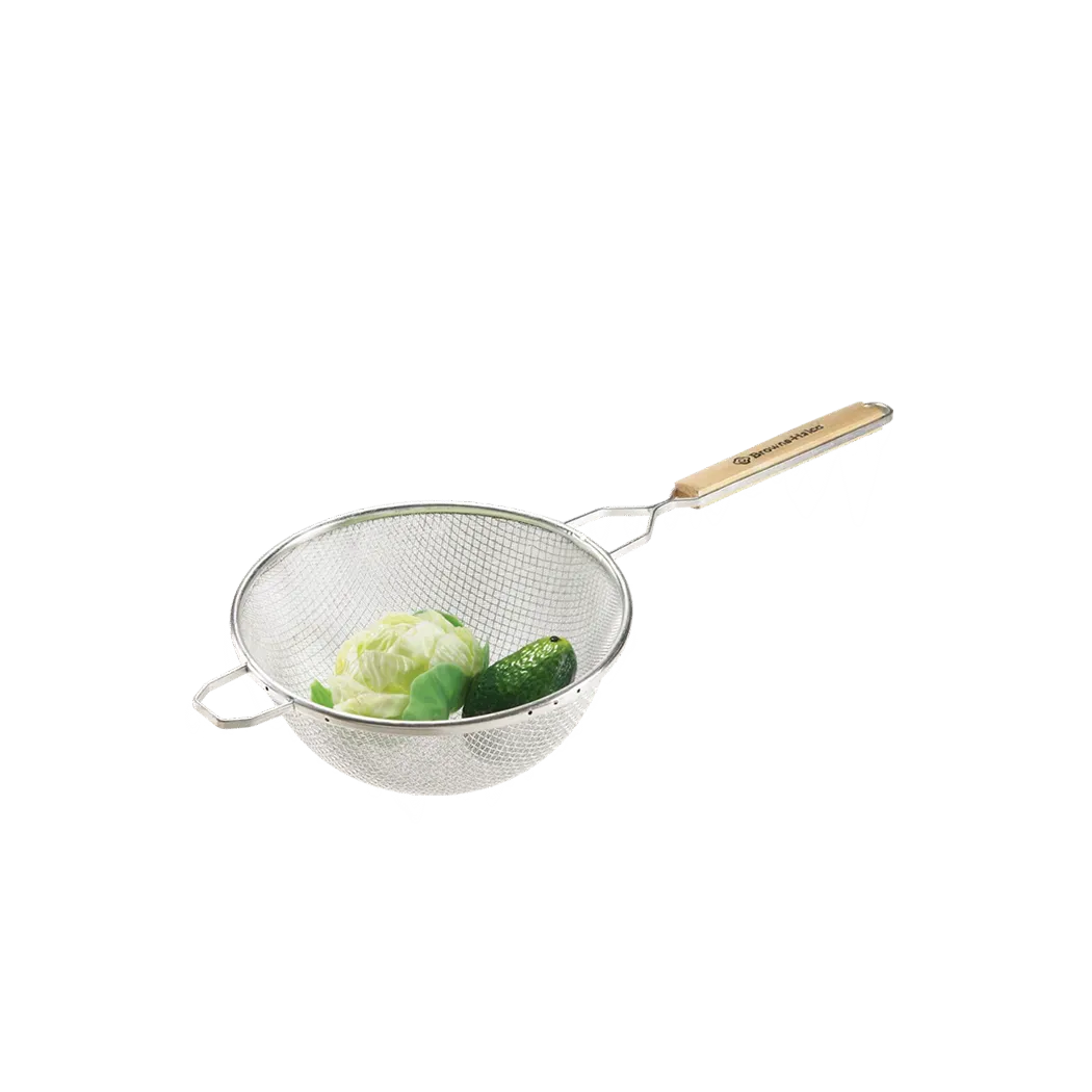 Equip for success with essential tools like the Browne Foodservice 8098 Kitchen Utensils - Strainers. Designed for commercial restaurant use, this double-mesh strainer is a must-have for any professional kitchen. With its 8" bowl, it provides ample space for straining ingredients, ensuring a smooth and consistent texture in your dishes. The fine mesh effectively filters out even the smallest particles, guaranteeing a refined and professional result every time. Made by Browne Foodservice, a trusted name in the industry, this strainer is built to last, with a durable construction that can withstand the demands of a busy kitchen. Whether you're straining sauces, soups, or stocks, this strainer will deliver exceptional performance. Don't compromise on quality when it comes to your culinary creations. Invest in the Browne Foodservice 8098 Kitchen Utensils - Strainers and elevate your cooking to the next level.