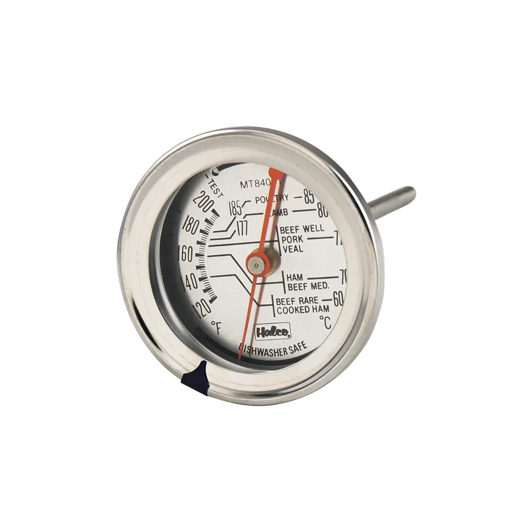 Elevate the reputation of your commercial restaurant with the Browne Foodservice MT84001 Kitchen Equipment - Thermometers. This dial meat thermometer is a must-have tool for any professional kitchen. With a temperature range of 120F/220F or 60C/85C, it ensures accurate readings for perfectly cooked meats every time.
