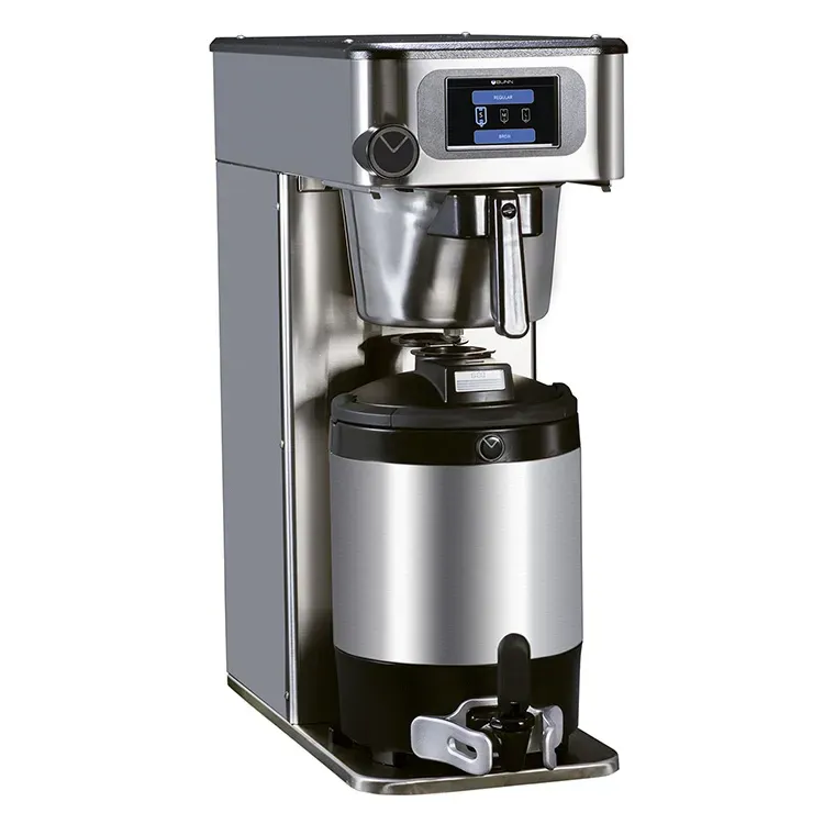 Craft dishes with top-notch instruments using the Bunn 53300.0100 Coffee Brewer for Thermal Server. This platinum edition coffee brewer is designed for commercial restaurant use, delivering exceptional performance and convenience. With its pre-infusion and pulse brew functions, you can extract the perfect flavor from your coffee beans, ensuring a rich and aromatic brew every time. The brewer is compatible with 2.5 to 3.8 liter airpots or 3.8 to 5.7 liter baseless Thermofresh servers, allowing you to serve a large number of customers without compromising on quality. The 4.3" color touchscreen and wireless interface make programming and operation a breeze, while the SmartWAVE sprayhead technology ensures even extraction and optimal flavor. With its energy-saving mode and stainless steel construction, this coffee brewer is not only efficient but also durable. Elevate your coffee offerings and impress your customers with the Bunn 53300.0100 Coffee Brewer for Thermal Server.