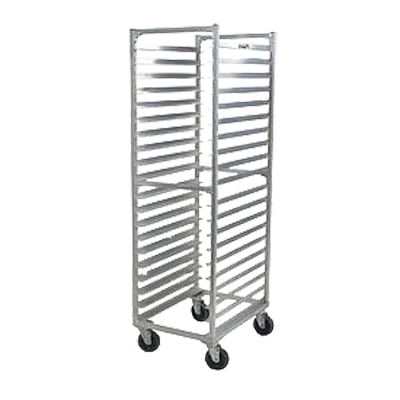 Introducing the Carter-Hoffmann O8609 Pan Rack, Bun - the innovative solution to your commercial restaurant's food storage challenges. This aluminum construction pan rack is designed to optimize your kitchen's efficiency and organization. With open sides and fixed angle slides, it allows for easy access and smooth loading of trays. The rack can accommodate up to 9 trays measuring 18" x 26", with a spacing of 5-1/16" between each tray. Its end loading feature ensures convenient placement and retrieval of trays, saving you valuable time during busy service hours. Equipped with 5" casters, this pan rack is easy to maneuver, making it ideal for fast-paced restaurant environments. Whether you need to store buns, pans, or other food items, the Carter-Hoffmann O8609 Pan Rack is the reliable and efficient choice for your commercial kitchen.