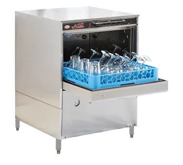 Fuel your restaurant's success with the CMA Dishmachines, L-1C Glasswasher. This undercounter glasswasher is designed to meet the high demands of a commercial restaurant. With its low temperature chemical sanitizing feature, it ensures that your glassware is thoroughly cleaned and sanitized without compromising their quality. The double-wall stainless steel construction not only provides durability but also helps in noise reduction, creating a quieter working environment. The L-1C Glasswasher has an impressive capacity of 30 racks or 120 covers per hour, allowing you to efficiently handle large volumes of glassware. It features upper and lower wash arms with reinforced end caps, ensuring a thorough and consistent wash every time. The built-in chemical pumps, pumped drain, and pump purging & deliming system make maintenance hassle-free. With its compact size and 4" legs, this glasswasher can easily fit into any commercial kitchen. Invest in the CMA Dishmachines, L-1C Glasswasher and experience the convenience and efficiency it brings to your restaurant's dishwashing process.