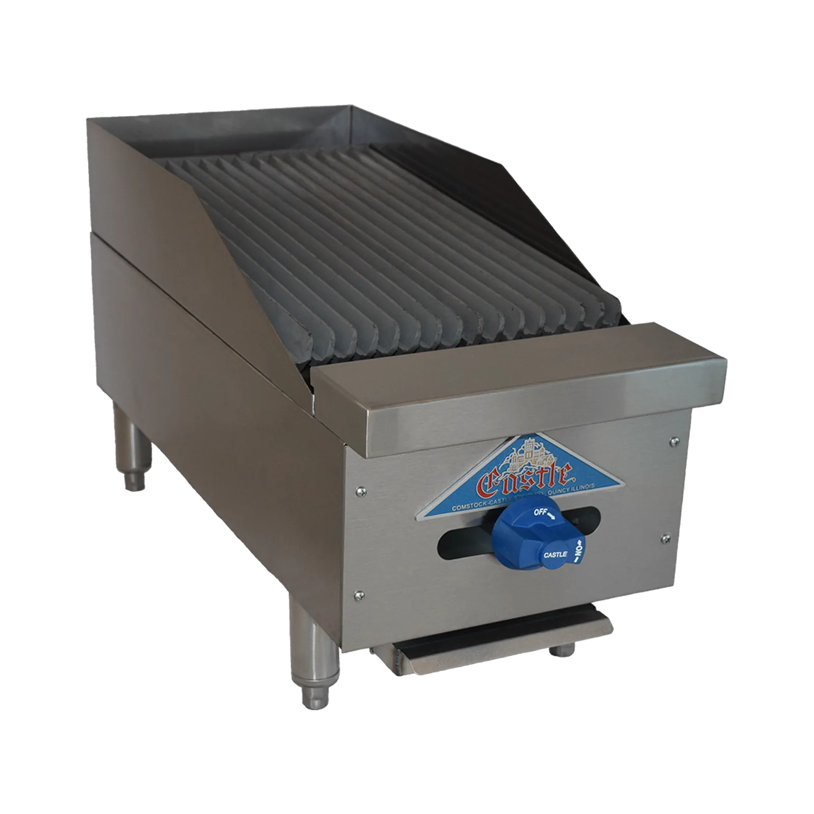 Enhance your culinary space with top-notch tools. Introducing the Comstock-Castle 3212RB Gas Countertop Charbroiler, a must-have for any commercial restaurant. This high-quality charbroiler is designed to deliver exceptional performance and durability. With a 12" wide x 24" deep grill area and inverted "V" angle iron radiants, it ensures even heat distribution and perfect grill marks on your meats and vegetables. The cast iron top grates, available in sloped or flat options, provide excellent heat retention and easy cleaning. The manual control allows you to adjust the temperature precisely, while the stainless steel splash guard keeps your workspace clean and safe. The insulated stainless steel frame ensures energy efficiency, and the 5" adjustable feet provide stability on any countertop. With a powerful 30000 BTU output, this NSF-certified charbroiler is a reliable and efficient addition to your kitchen. Elevate your restaurant's grilling game with the Comstock-Castle 3212RB Gas Countertop Charbroiler.