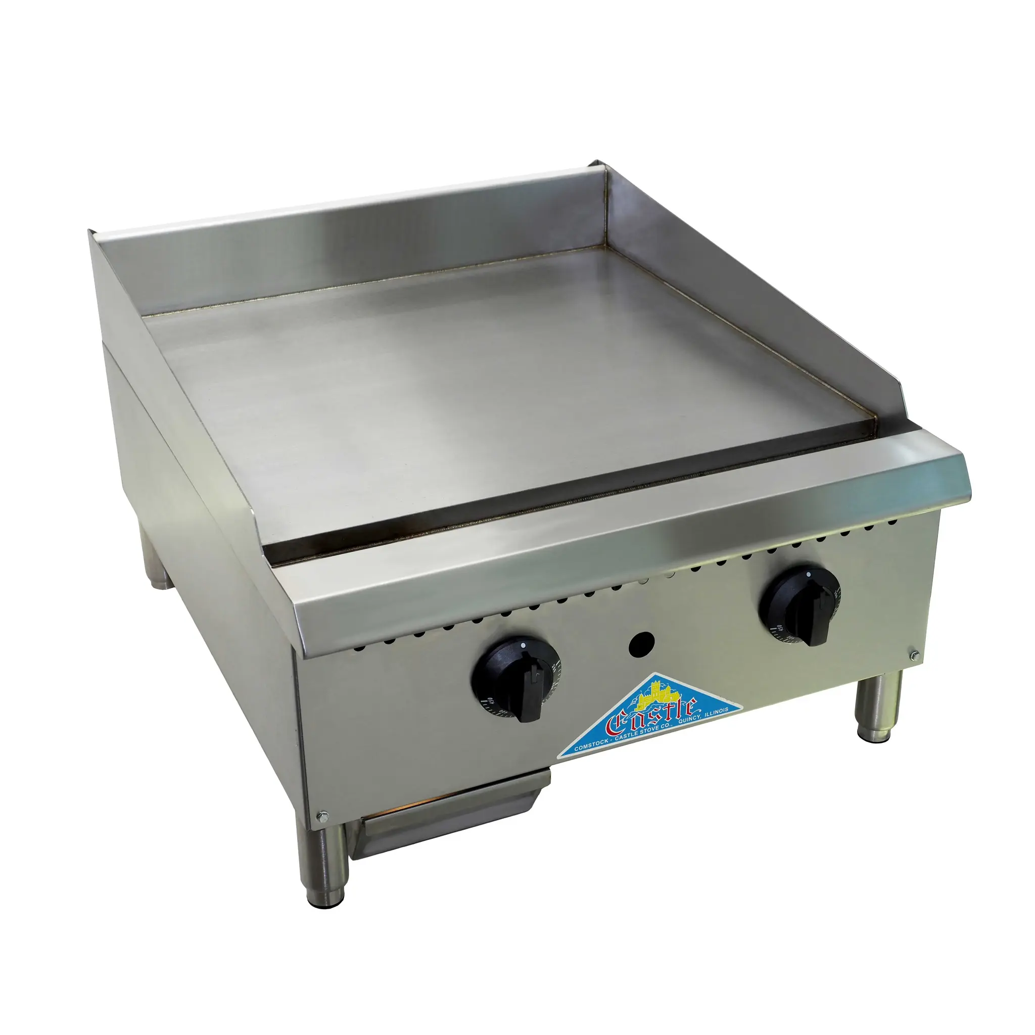 Invest in quality for an unmatched cooking journey with the Comstock-Castle CCHG-48-1 Gas Countertop Griddle. Designed for commercial restaurant use, this griddle is a game-changer in the kitchen. Its 48" wide x 30" deep frame provides ample cooking space, while the smooth highly polished steel griddle plate ensures even heat distribution for perfect results every time. With four manual controls, you have precise control over the temperature, allowing you to cook a variety of dishes simultaneously. The 4" splash guard on the back and ends keeps your workspace clean, while the 3" wide front grease trough and removable grease drawer make cleaning up a breeze. Made with a stainless steel exterior and 4" stainless steel legs, this griddle is built to withstand the demands of a busy commercial kitchen. With a powerful 120,000 BTU, NSF certification, and ETL-Sanitation approval, the Comstock-Castle CCHG-48-1 Gas Countertop Griddle is the perfect addition to any commercial restaurant.