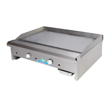 Set the stage for culinary excellence with the Comstock-Castle EG30-T Gas Countertop Griddle. Designed for commercial restaurant use, this griddle is a game-changer in the kitchen. Its 30" wide x 20" deep highly polished steel griddle plate provides ample space for cooking a variety of dishes simultaneously. With two thermostat controls, you have precise temperature control for different cooking needs. The 3" splash guard on the back and ends ensures a clean and safe cooking environment. The 4-1/2" wide front grease trough and large removable grease drawer make cleaning a breeze. Made with an aluminized steel exterior finish, this griddle is built to withstand the demands of a busy kitchen. With a powerful 64000 BTU, this NSF and ETL certified griddle delivers exceptional performance. Elevate your culinary creations with the Comstock-Castle EG30-T Gas Countertop Griddle.