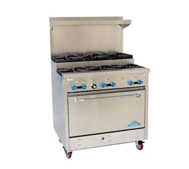 Introducing the Comstock-Castle FSU330 Range, a game-changer for commercial restaurants seeking superior culinary results. This gas range is designed to elevate your cooking experience with its innovative features and exceptional performance. With a 36" wide x 31" deep frame, it offers ample space for your culinary creations. The range boasts six 24000 BTU Step-Up star burners, each equipped with a 12" x 12" cast iron grate, ensuring even heat distribution and precise control. The 31-1/2" wide oven, with enamel and aluminized lining, provides a spacious cooking area with three rack positions. The stainless steel exterior, back riser, and high shelf not only enhance durability but also add a touch of elegance to your kitchen. With 6" stainless steel legs, this range stands sturdy and stable. Delivering a powerful 174000 BTU, this NSF and cETLus certified range is a reliable companion for any commercial restaurant. Upgrade your culinary game with the Comstock-Castle FSU330 Range and experience the difference it makes in your kitchen.